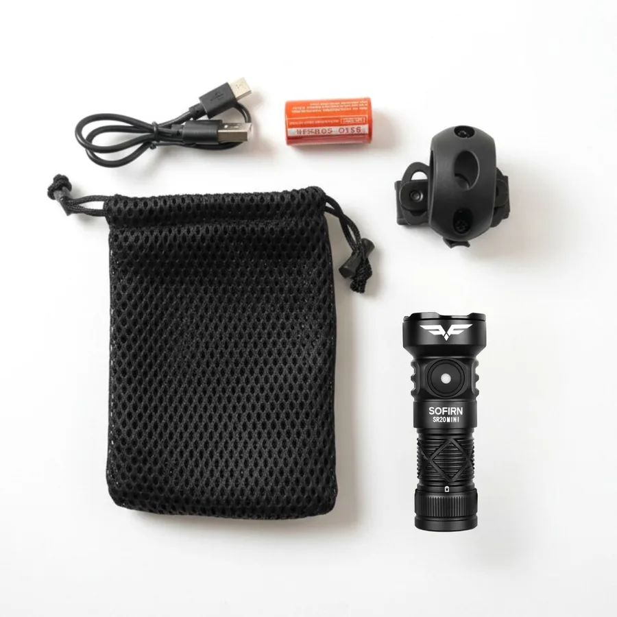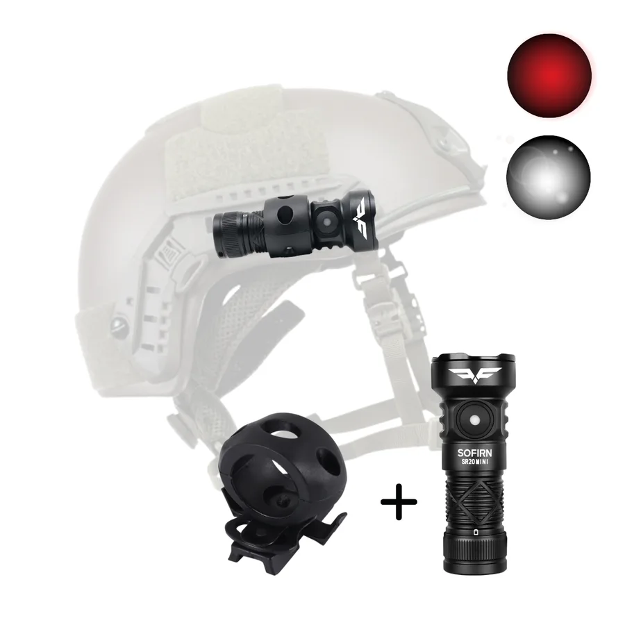 פנס FR8 של פורסט בעוצמה של 1200 לומנס מיועד לשים על צד הקסדה .