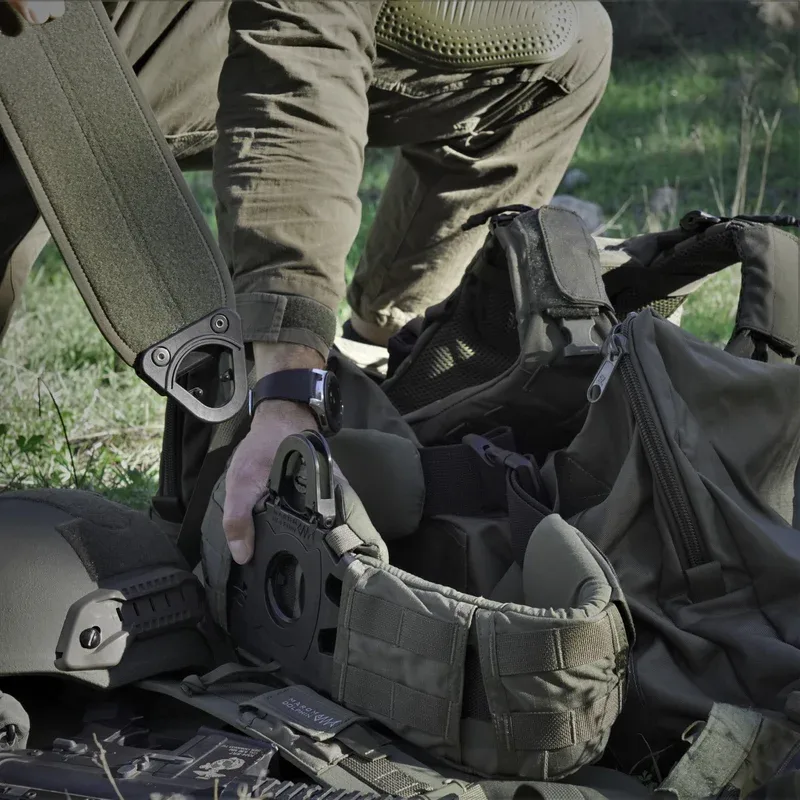 החגורה מגיעה כסט עם מתאם Backbone (“עמוד שדרה”) מלפפון, לחיבור לאפוד והעברת עומס מדויקת ויציבה, עם מנגנון ניתוק מהיר ובטוח. בנוסף, היא כוללת מחברי T.P.P ו־Anchor לחיבור ציוד בשליפה מהירה, לצד רצועות MOLLE לכל אורכה להתאמה מלאה של הציוד.