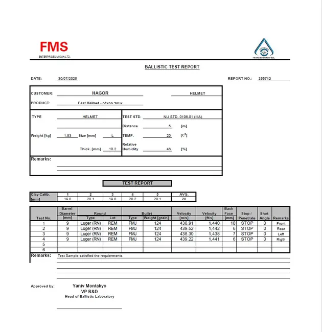 הקסדה מספקת רמת מיגון בליסטית גבוהה לפי תקן NIJ IIIA