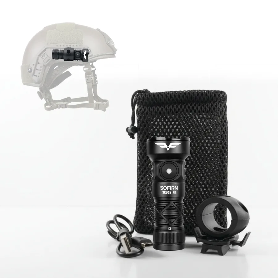 פנס FR8 של פורסט בעוצמה של 1200 לומנס מיועד לשים על צד הקסדה .