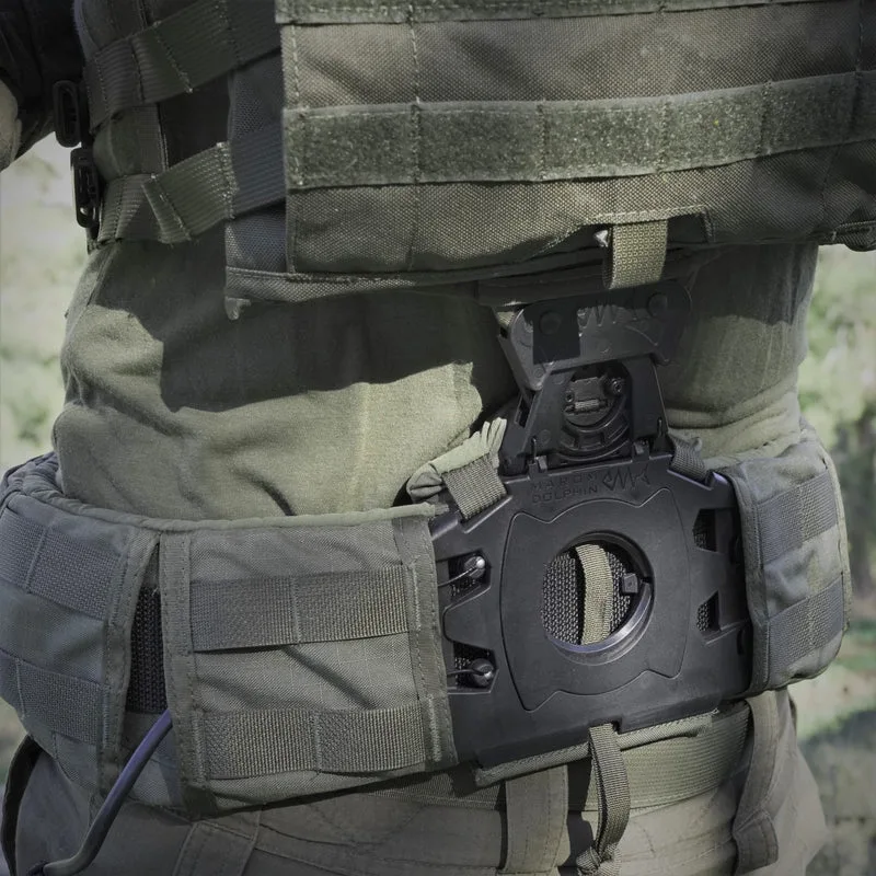 חגורת אגן של חברת מרעום דולפין ניראת גם חגורת קור, שהיא רכיב מרכזי במערכת L.I.F.T – חגורת קרב רחבה ומרופדת שתוכננה לנשיאה ממושכת תחת עומס. המערכת מעבירה חלק משמעותי מהמשקל מהכתפיים אל האגן, מה שמפחית לחץ, משפר יציבות ומאפשר עבודה ממושכת בנוחות גבוהה יותר.
